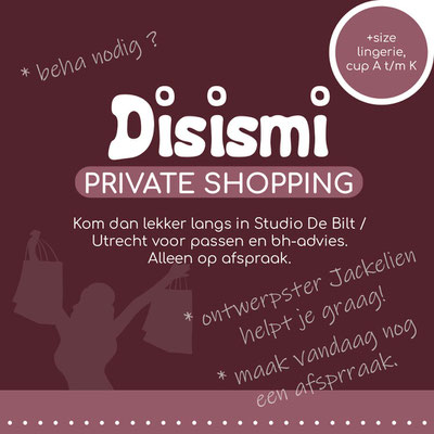 Achter dit vrolijke lingeriemerk zit “bh goeroe” Jackelien Struik. Met een eervolle I of J cup, heeft ze veel ervaring met de 'struggles' van goed ondergoed. Als tiener kwam ze huilend thuis, omdat de bh’s zo oubollig waren. Toen al besloot ze dat ze een Plus Size lingeriemerk zou oprichten. Jackelien: “Mijn doel is om vrouwen blij te maken. Of dat nu met vrolijke printjes is of een fijn pas advies. Je zult de sfeer van ‘fun & lightness’ in alles van Disismi terugvinden. Van een bijzondere merknaam tot aan de grappige ‘schudden voor gebruik’ kaartjes. Kom gezellig een keer naar één van onze Disismi Dagen of maak een 'VIP'-afspraak in onze studio in De Bilt (vlakbij Utrecht). Ik help je graag.”